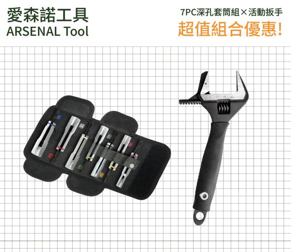 愛森諾|7PC深孔套筒組 + 活動扳手 超值組合