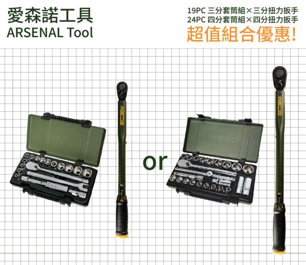 愛森諾|19PC三分套筒組 + 三分扭力扳手 or 24PC四分套筒組 + 四分扭力扳手 超值組合