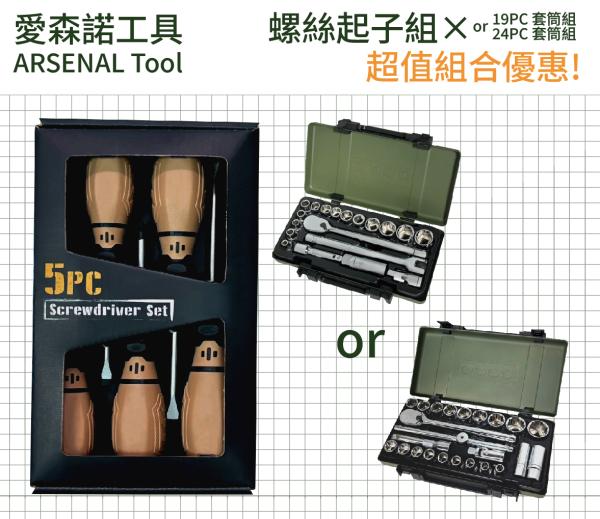 愛森諾|魚雷螺絲起子組 + 19PC套筒組 or 24PC套筒組 超值組合