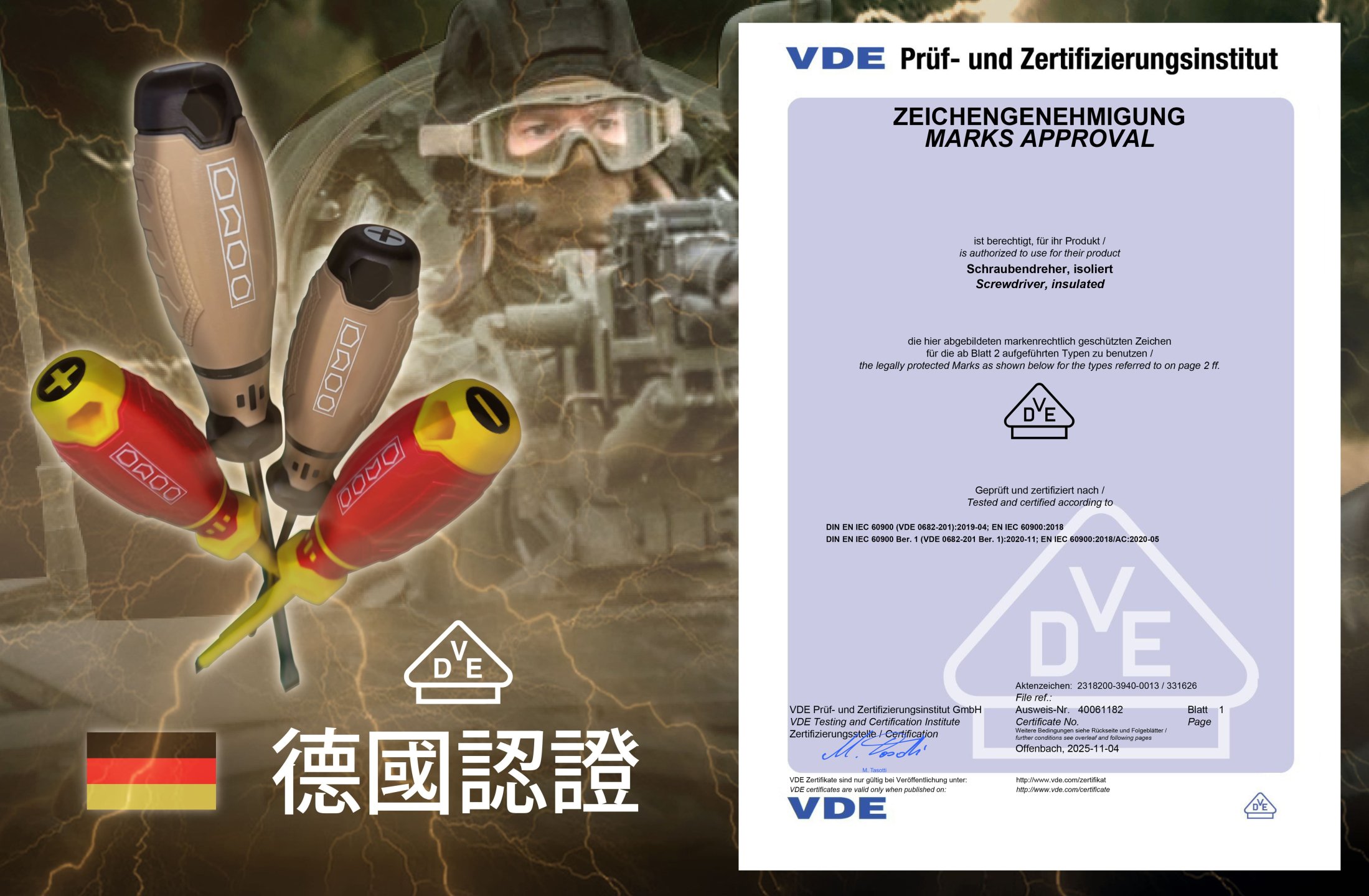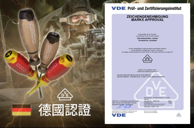 1000V絕緣、德國VDE認證、舒適TPR握柄、刀桿導磁、防滾手柄設計、台灣製造、高級S2鋼材