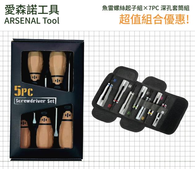 品名: 愛森諾 5PC 螺絲起子組 魚雷手柄系列